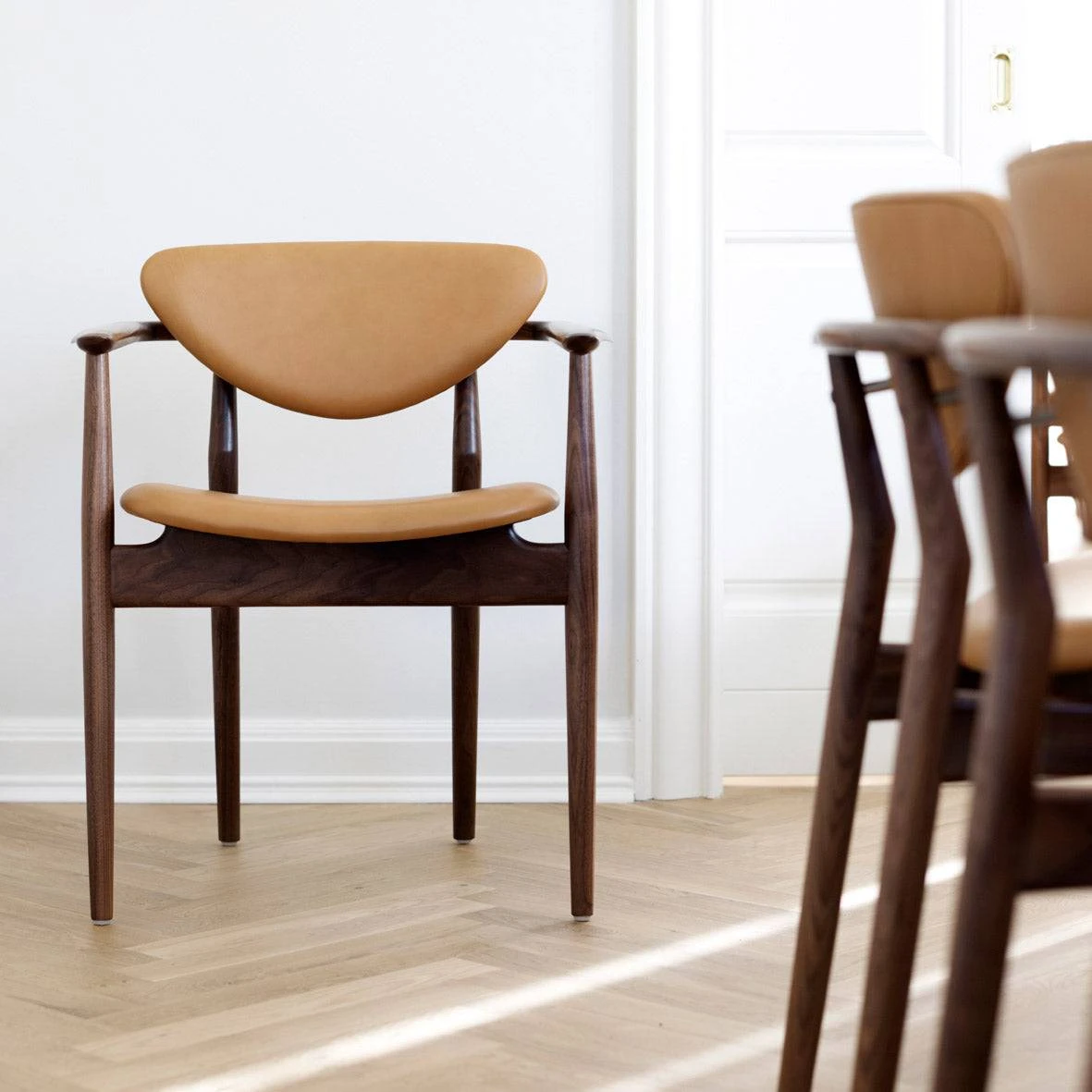 The 109 Chair was designed in 1946. The chair is manufactured in walnut. It is a typical Finn Juhl chair executed in a light, elegant and appealing design. It is a beautiful chair, which is a pleasure to touch and very comfortable to sit in.