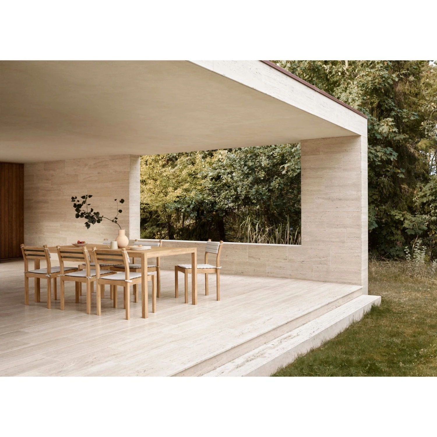 The AH901 Outdoor Dining table was designed by Alfred Homann in 2022 as part of the AH Outdoor series, characterized by strict lines elegantly united with soft, rounded details. Like the rest of the series, the table is made of FSC™-certified teak, a hardy type of wood that patinas beautifully over time.