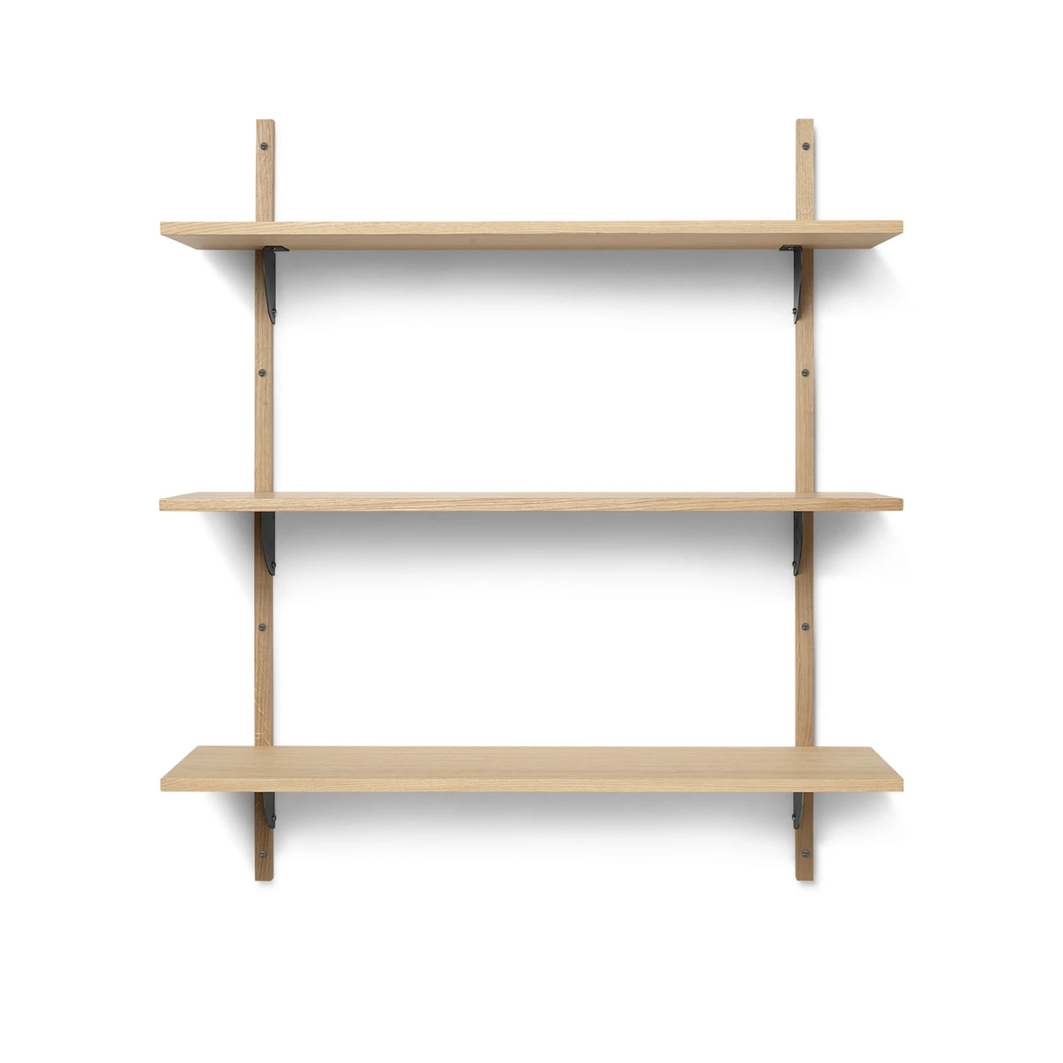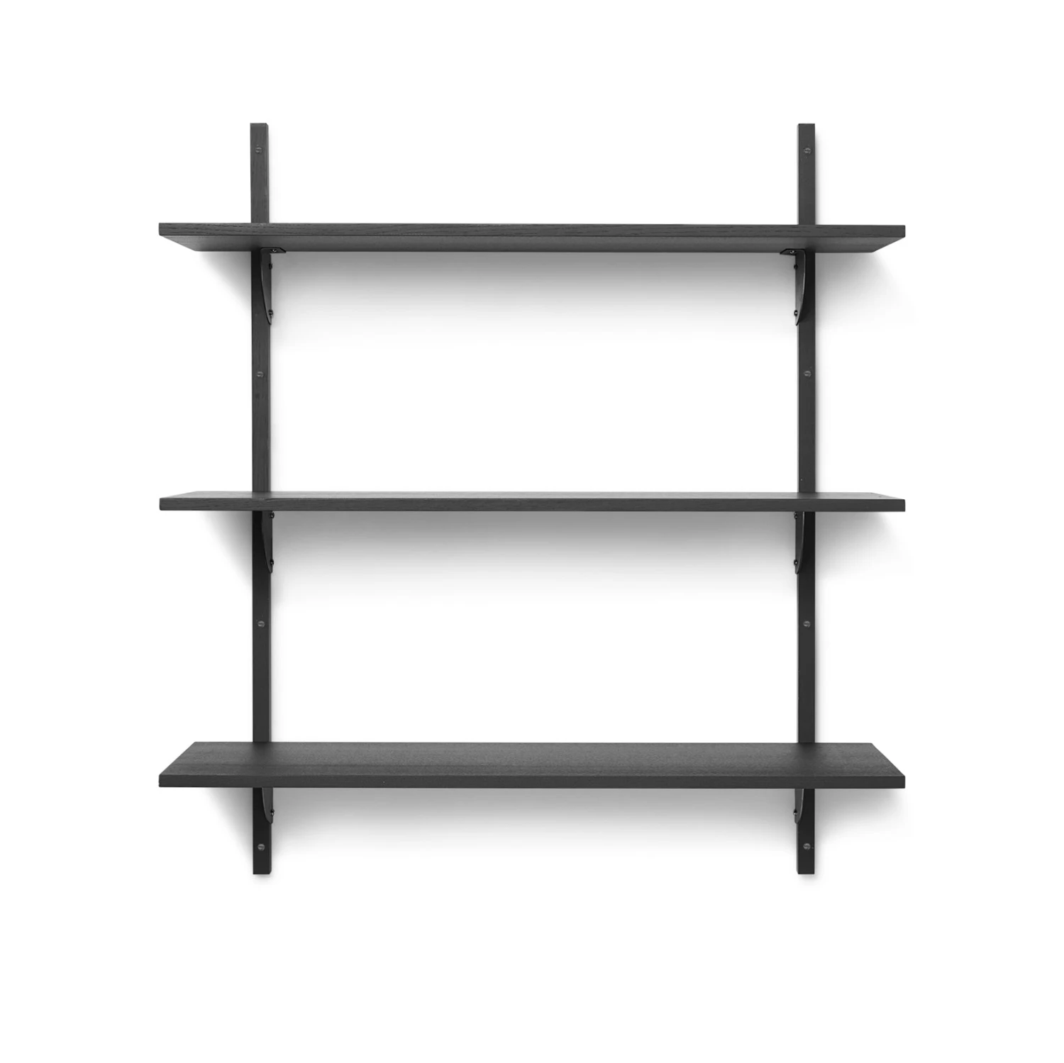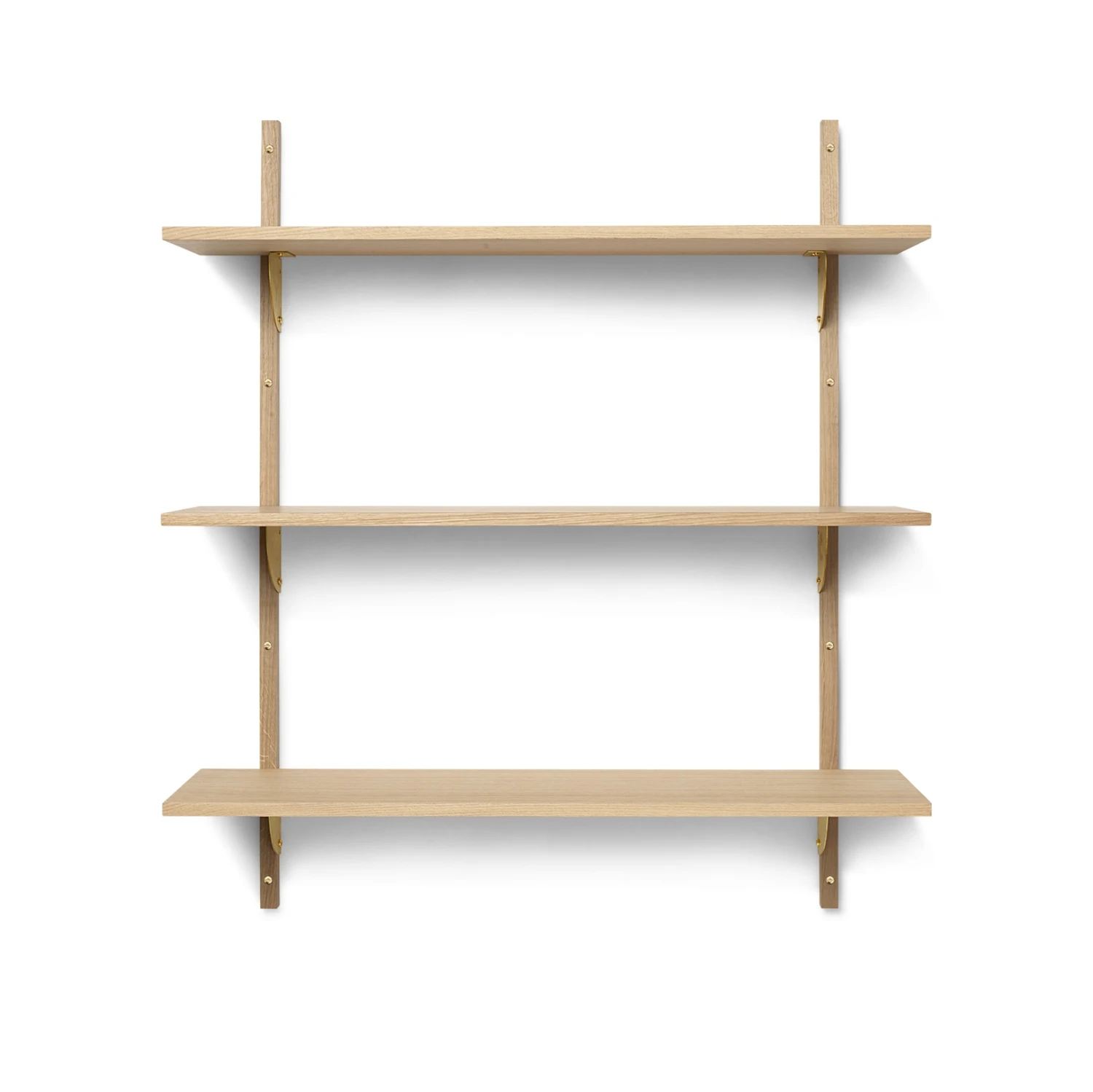 A new and modern take on Mid-century shelving units, Sector is defined by its sturdy simplicity and classic combination of wood and brass – available with natural oak veneer or black stained ash veneer shelves, and polished brass or blackened brass brackets.