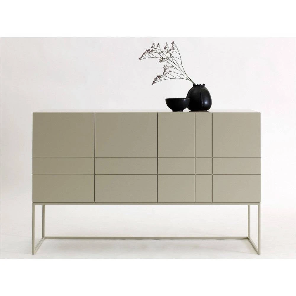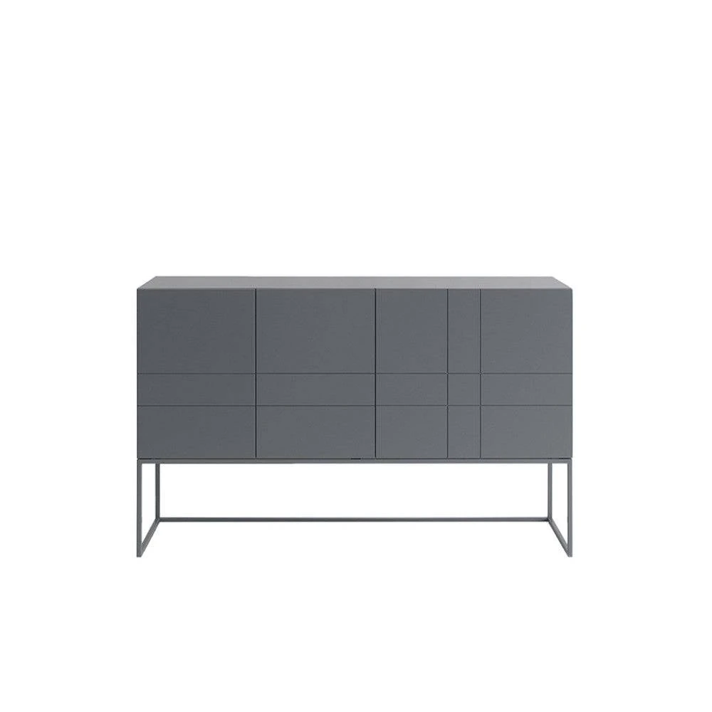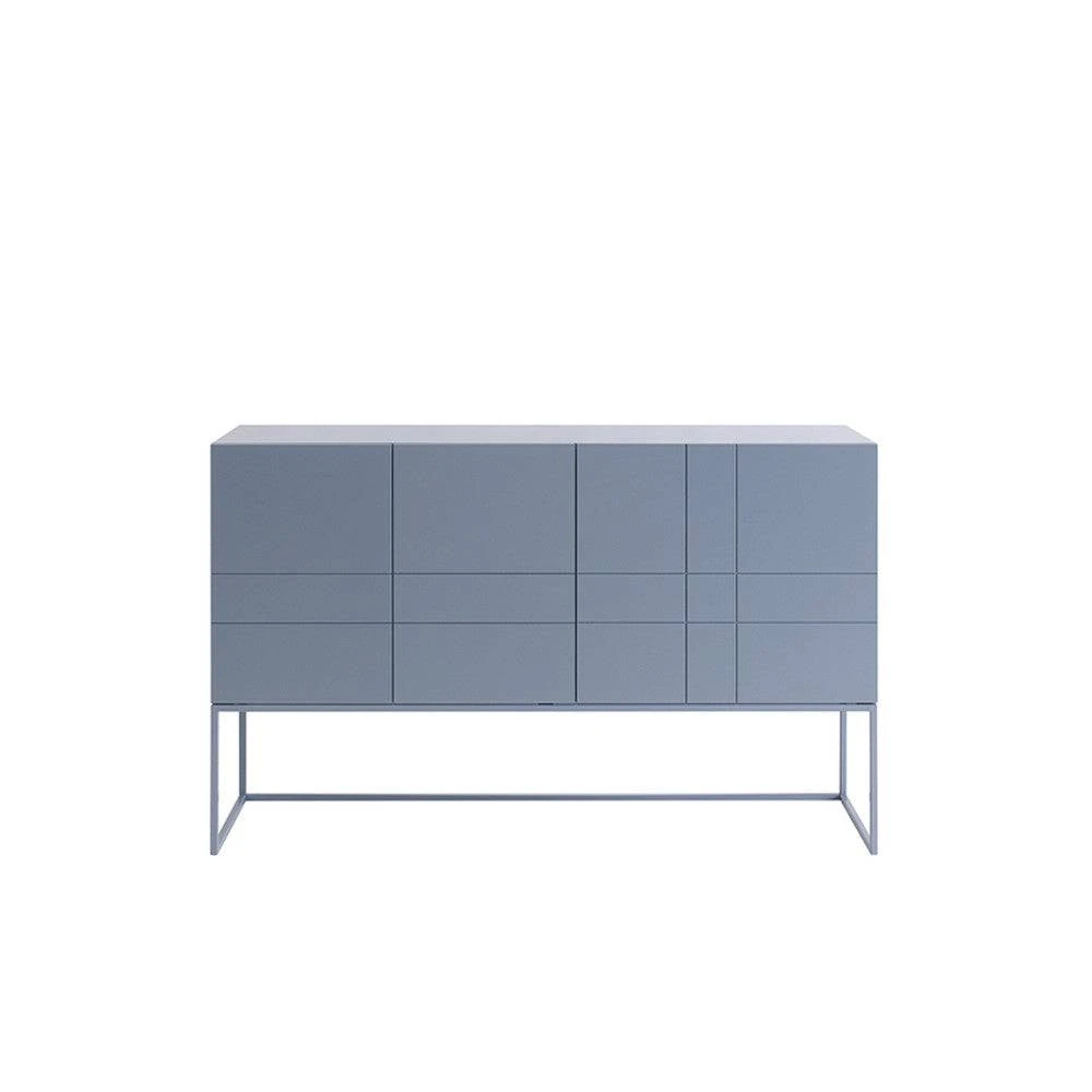 Available in 8 colours, The KILT light 137 has 3 doors, a shelf attached behind them, a lacquered metal stand in the same colour, and adjustable shelves within the cabinet.