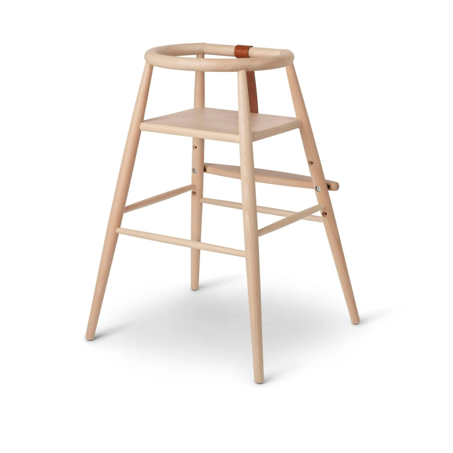 Handcrafted from easy-to-clean beech wood, this high chair adapts to the changing needs of growing children so that it can be used by children up to five years old and weighing up to 15 kilograms.