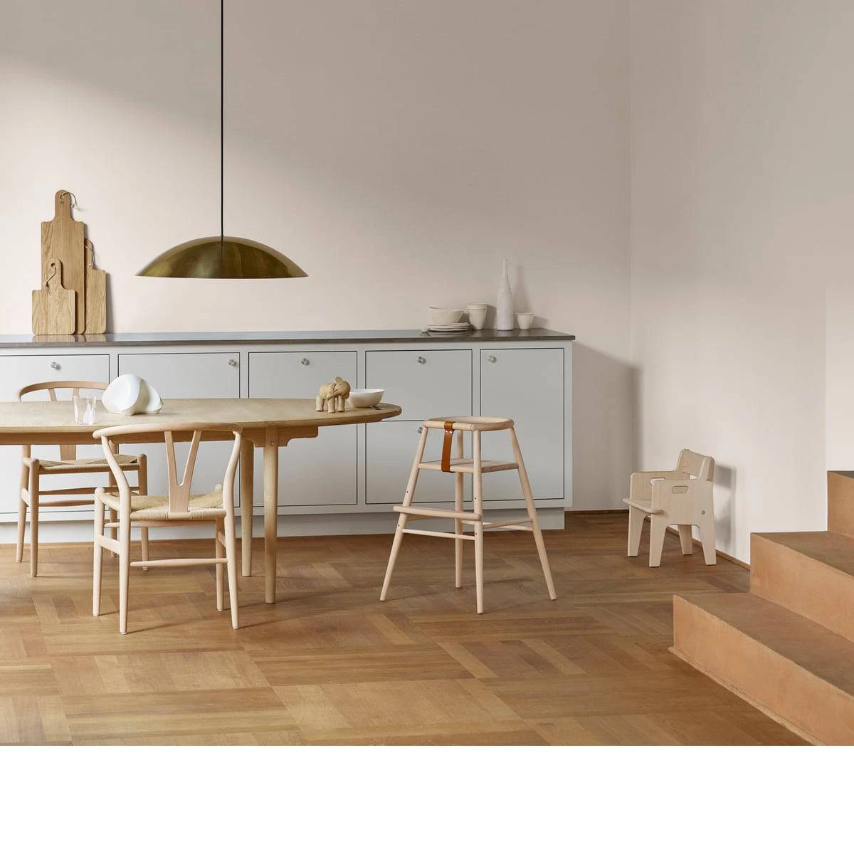 The Carl Hansen ND54 children’s high chair is a celebrated piece of modern children’s furniture, designed by the married couple Nanna and Jørgen Ditzel. With its slim and natural design, it fits easily into a variety of dining room styles and kitchens and exudes a secret flair.