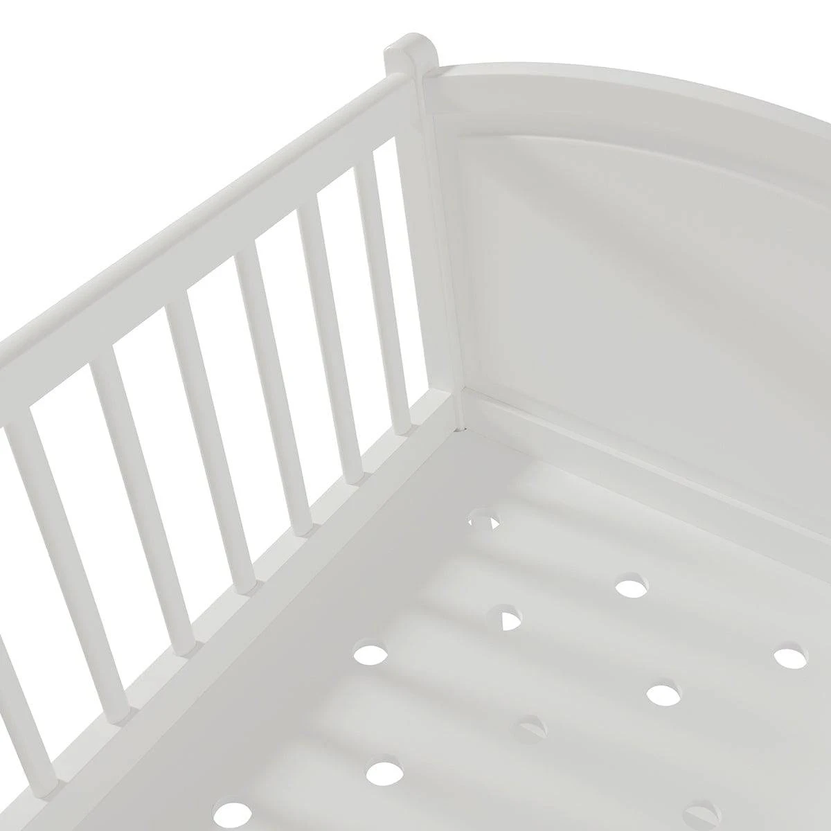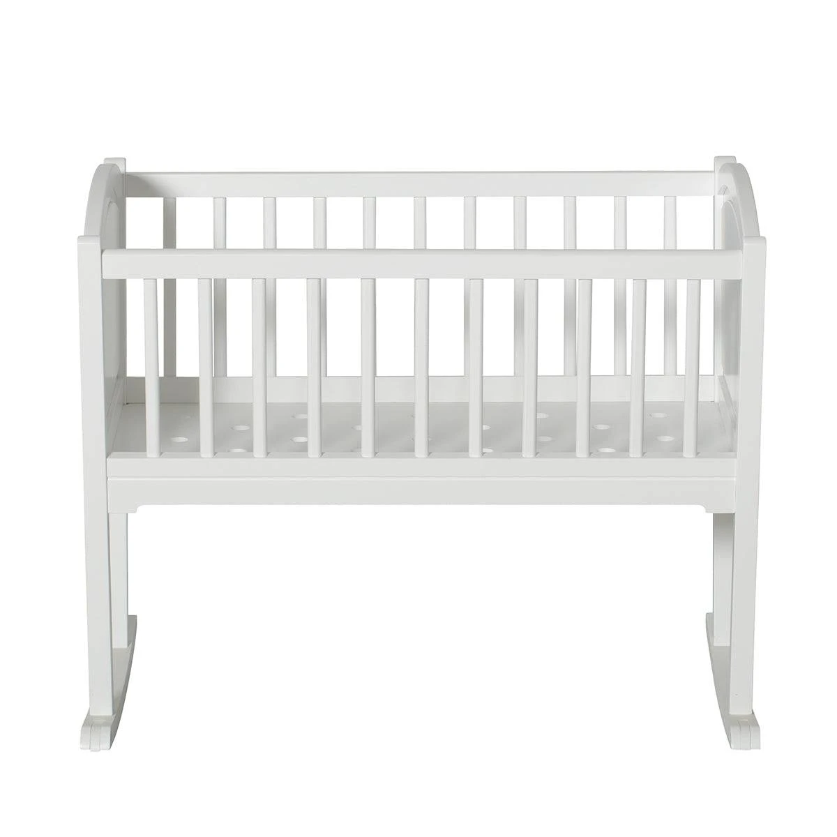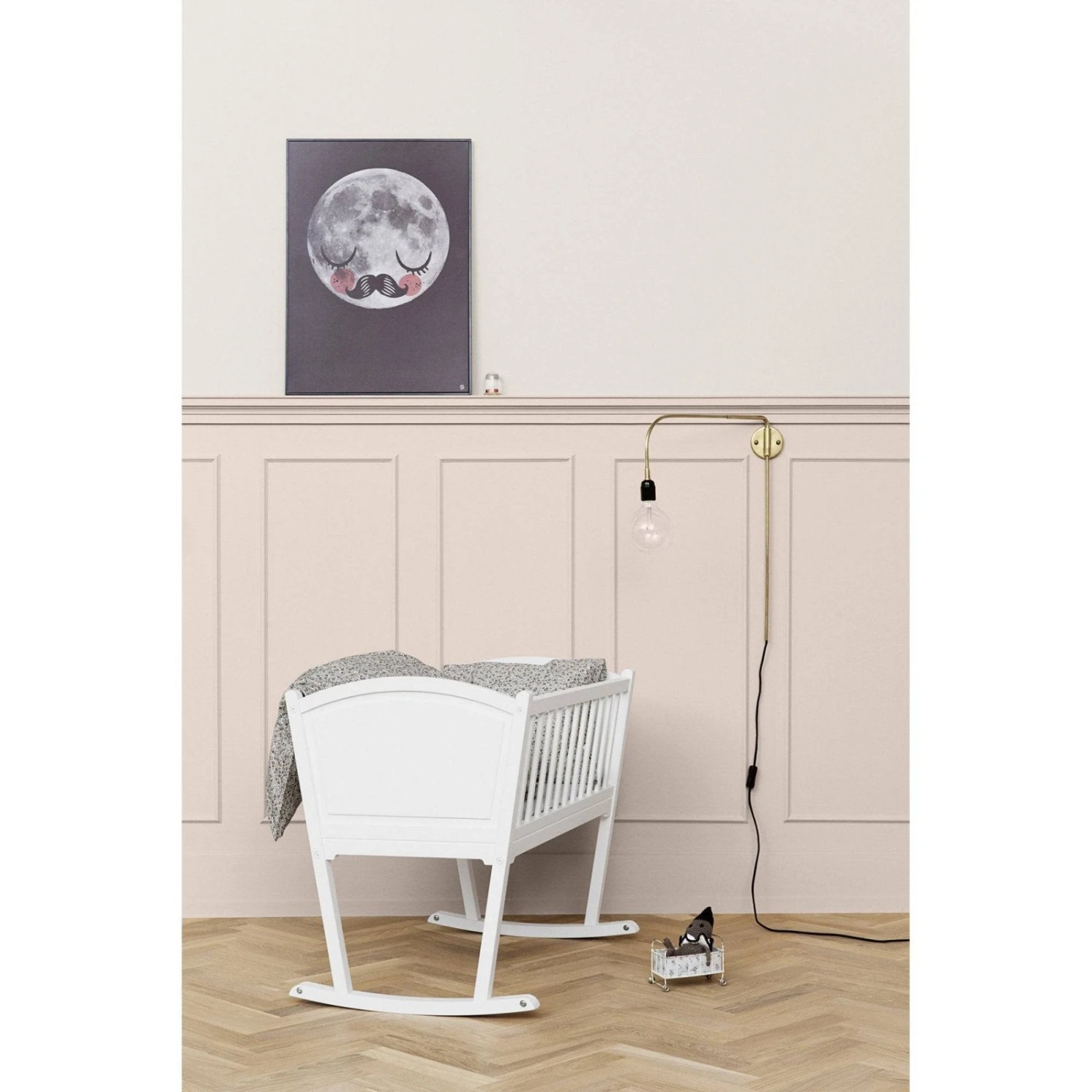Cradle with Scandinavian roots for the newborn baby. The cradle has beautiful end pieces and bars on the sides. It is simple in its expression and the design is Danish. All our children’s furniture is produced under sustainable production in Europe and the the quality is excellent. The crib is sturdy and durable and can be passed on as a beautiful heirloom to the next generations. As a security small stops are mounted beneath the bed. This baby bed is ideal as a gift to the newborn child and the future parents, as an example it can do great joy to a baby shower.