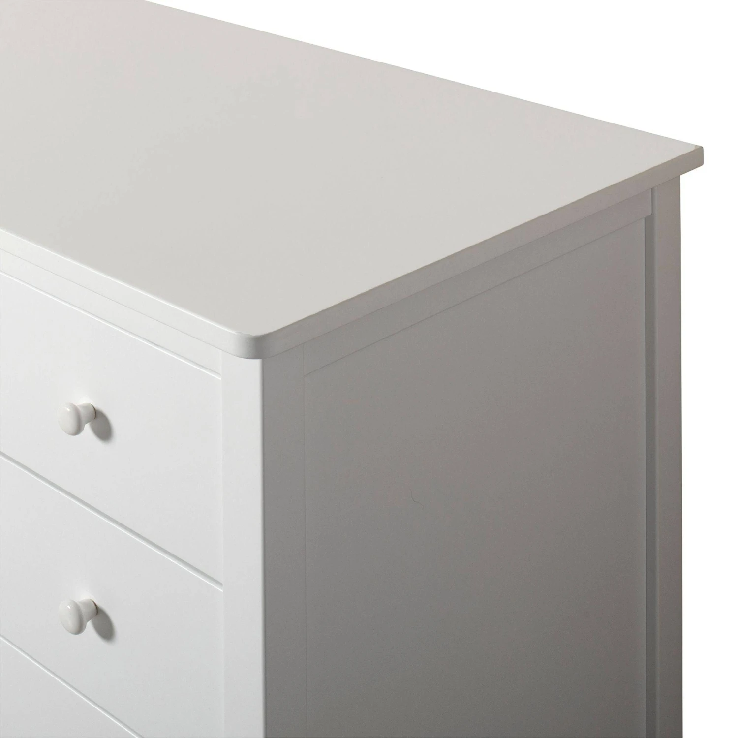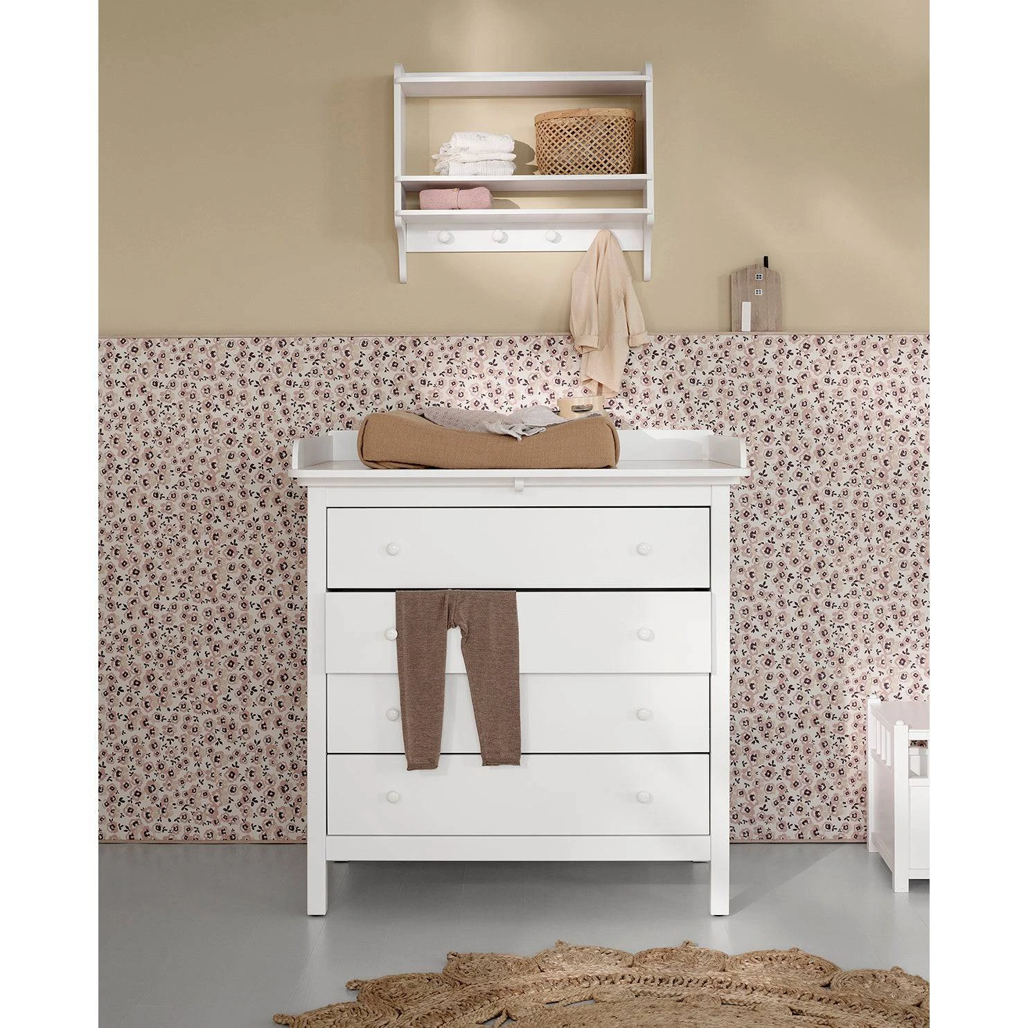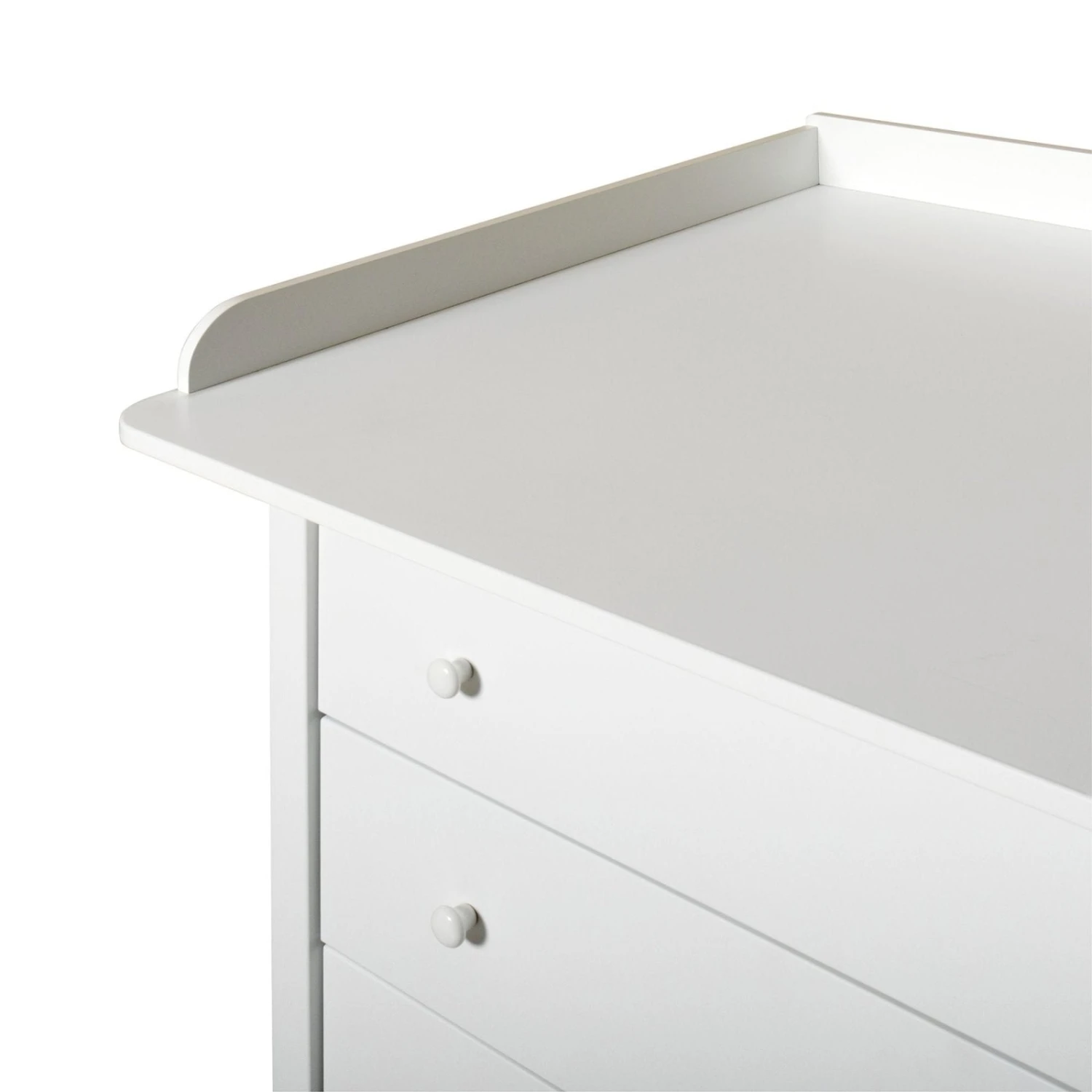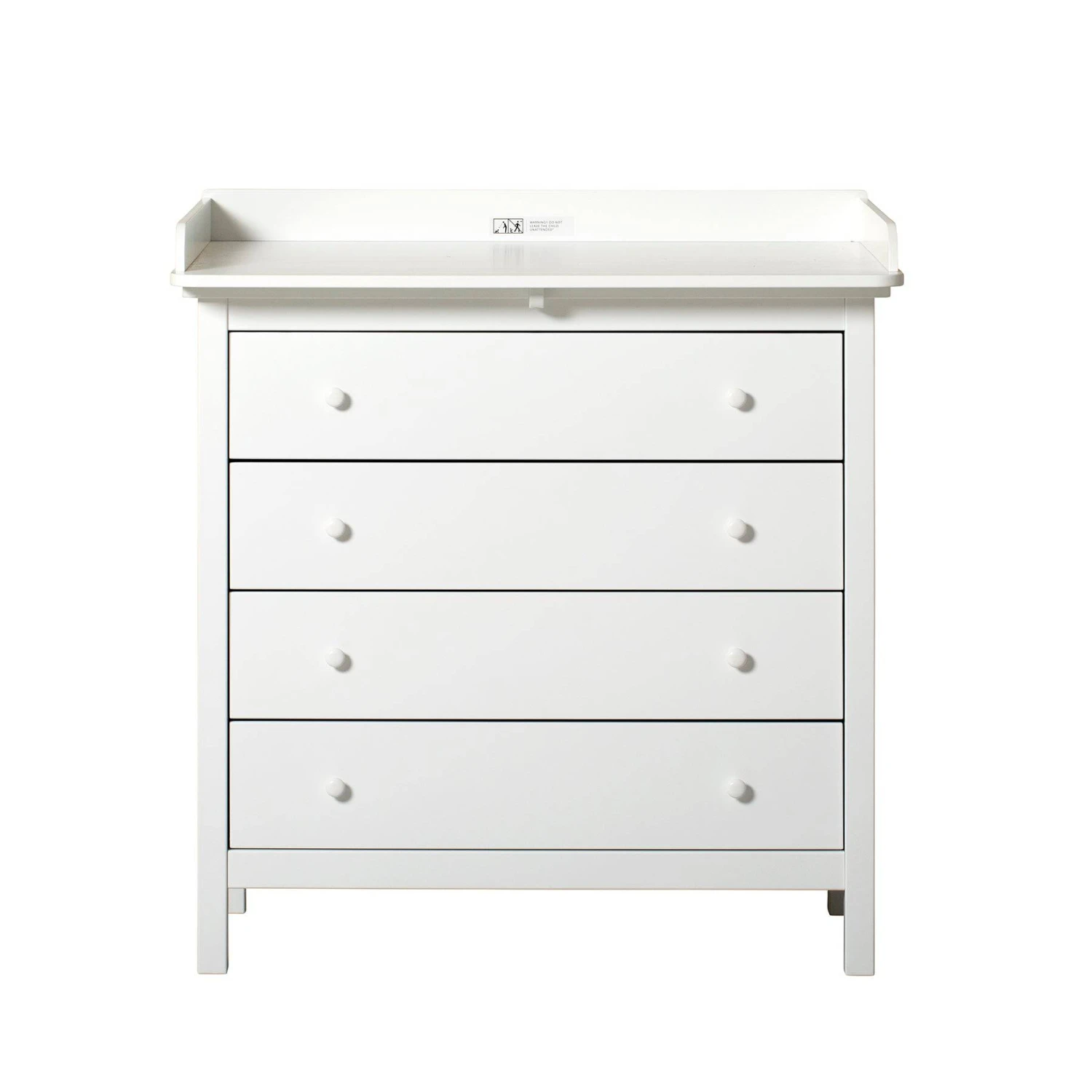 Seaside nursery dresser beautifully combines the nursing function with the necessary storage of baby’s clothes, diapers and muslin cloth diapers. In the dresser the clean lines are combined with the classic and timeless design which defines the Seaside Collection; a series of classic furniture for the children’s room. When the nursery top is no longer needed, it is easily removed – and leaves the dresser to its purpose for many years to come. This is an aspect of Oliver Furniture’s basic philosophy: that high quality furniture is an investment for life. Like all other items from Oliver Furniture, Seaside nursery dresser with 4 drawers is made in Europe and designed to meet the strict EU norms for safety and health. We use the best possible materials, and finished products are treated with only non-toxic interior paint. Non-visible screws, a defining trade of Oliver furniture, emphasises the design and impeccable quality of our products. The nursery dresser is part of our classic Seaside Collection. The Seaside nursery dresser has 4 solid and spacious drawers, which effortlessly run on high quality rails. A special ‘soft lock’-function dampens the closing of the drawers. The discretely rounded edges and the porcelain pulls combined with the dresser’s classic expression, add an element of nostalgia and finesse and create an overall harmonic expression. The nursery top covers the entire surface of the dresser, and its generous measurements give room for changing the baby, with everything necessary right at hand in the drawers below.