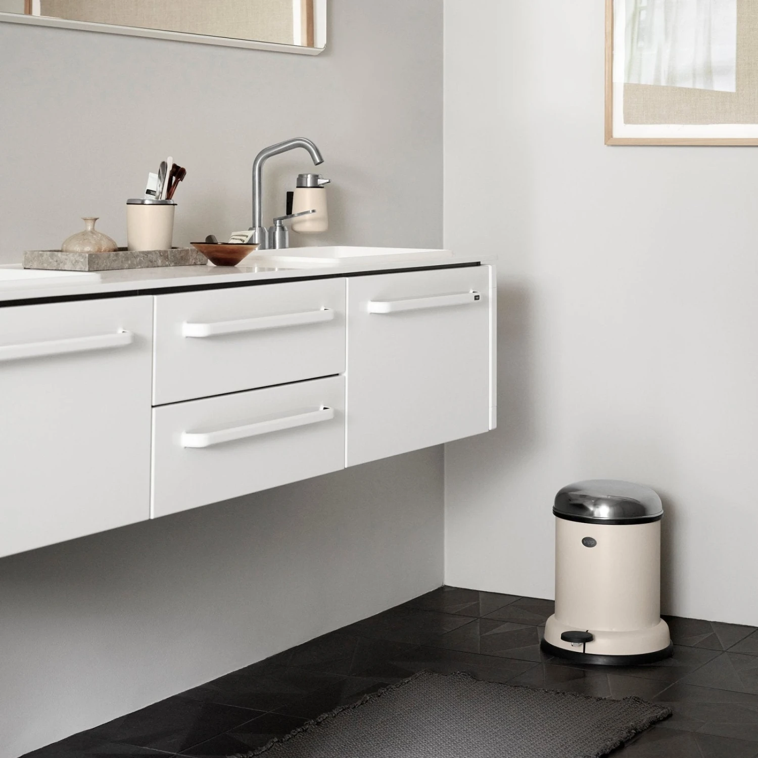 Being the smallest of their bins, the Vipp13 pedal bin requires minimal space and thrives well in smaller bathrooms.