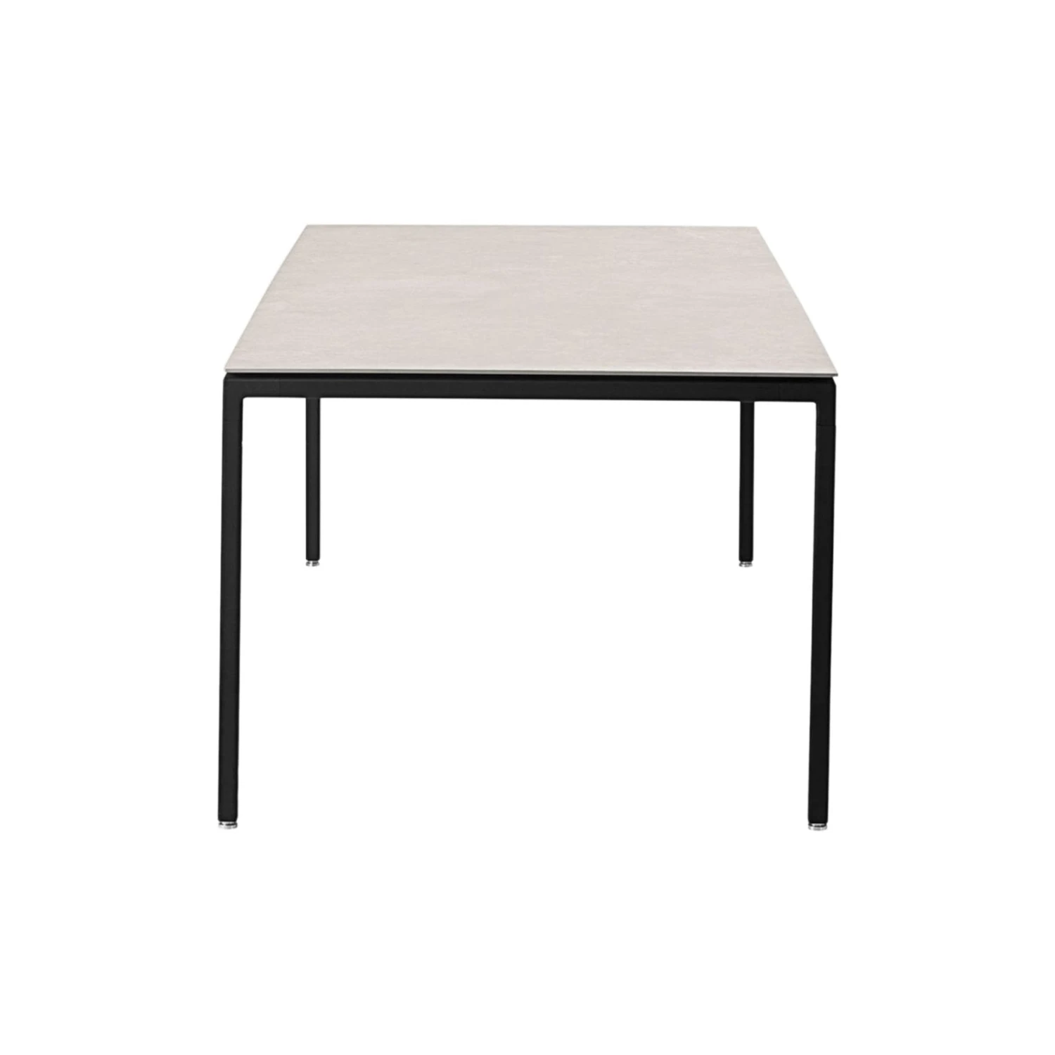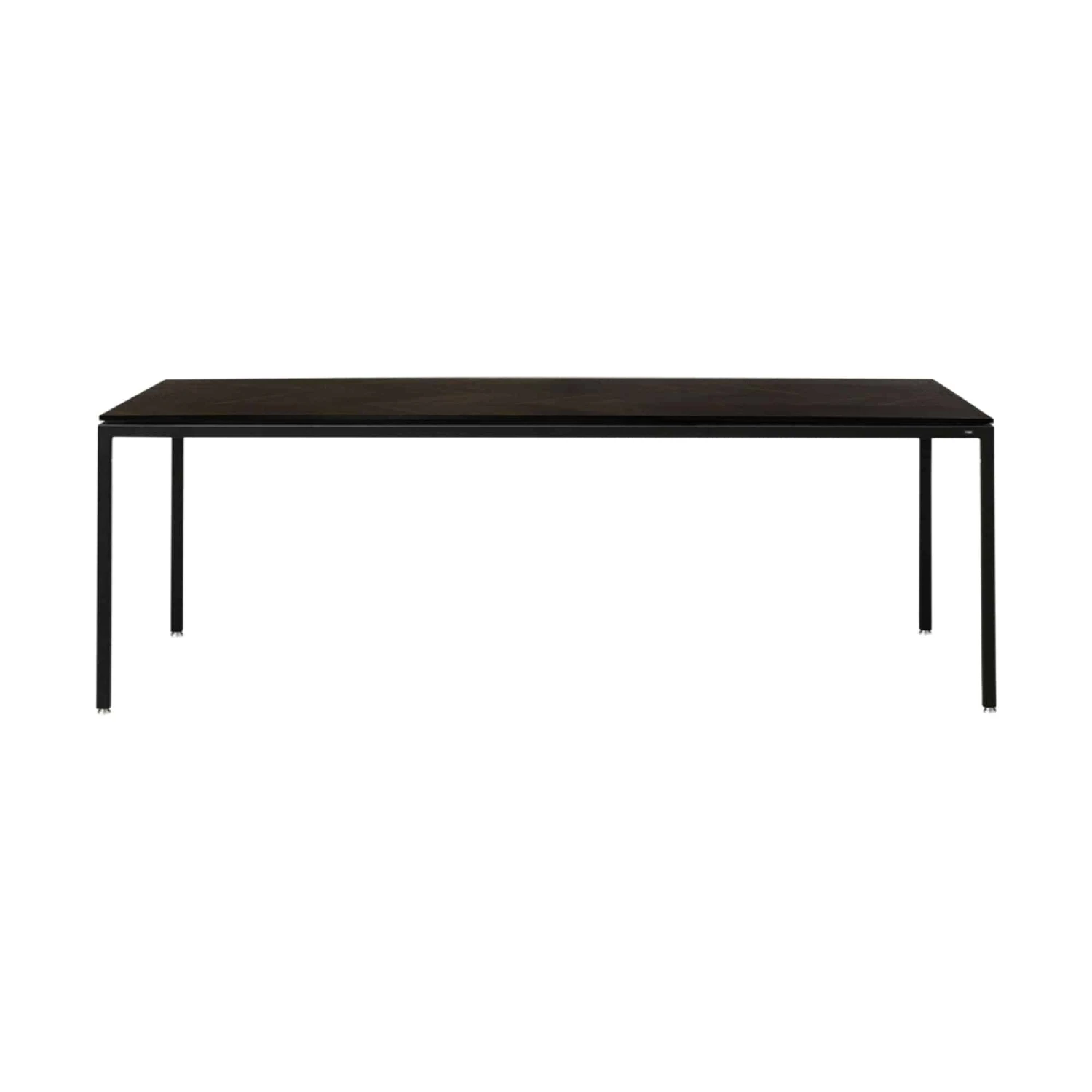 The Vipp table is a medium-sized table for the dining room or kitchen. Also available in a large version, the table features a steel frame with soft rounded corners and carries a highly durable tabletop of either heat-pressed ceramic or chevron-patterned, dark oak.